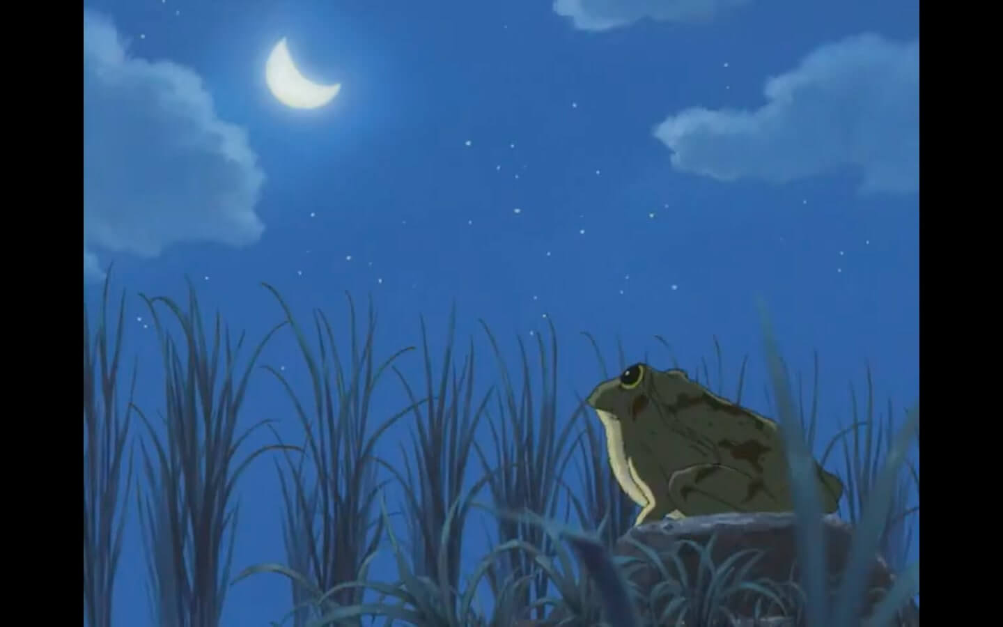 for some reason they cut to this frog looking up solumnly at the moon at one point and i like him. at one point ichiro woke up from a bad dream and was so scared he went to his grandpa's futon to sleep instead and i thought that was sweet. they kept doing things that made me think "oh okay NOW ichiro's going to turn a new leaf and stop being so insane" and that just never happened.