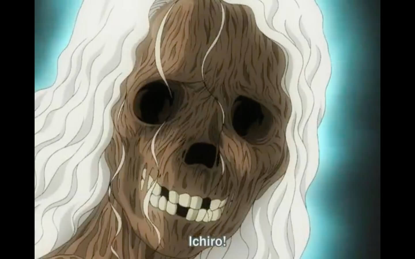 dead ichiro goes "huh. guess i deserved that" and then he gets shot up 1000ft into the sky. because he's a ghost now. he spots another ghost flying up, too! a very pretty lady with long brown hair. ("Totally different from Fugly." -ichiro. fugly is what he calls his older sister)