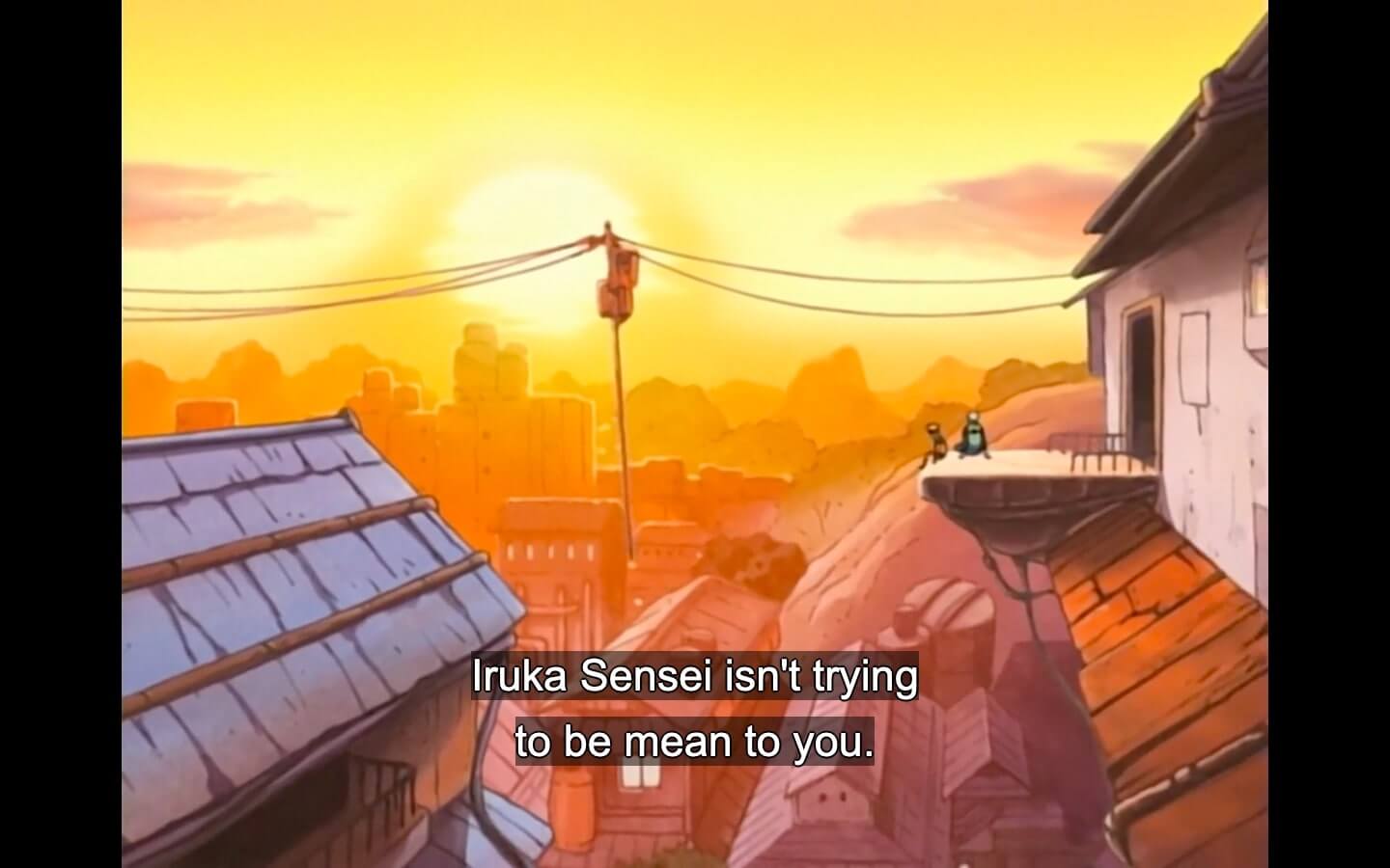 iruka finds naruto first and naruto is sooo excited to show iruka the new jutsu move he learned and then there's a whole misaki fight and it's really engaging!!! this is a COOL fight with COOL things happening and we learn COOL information about both iruka and naruto's backstories and it's very sad :+(