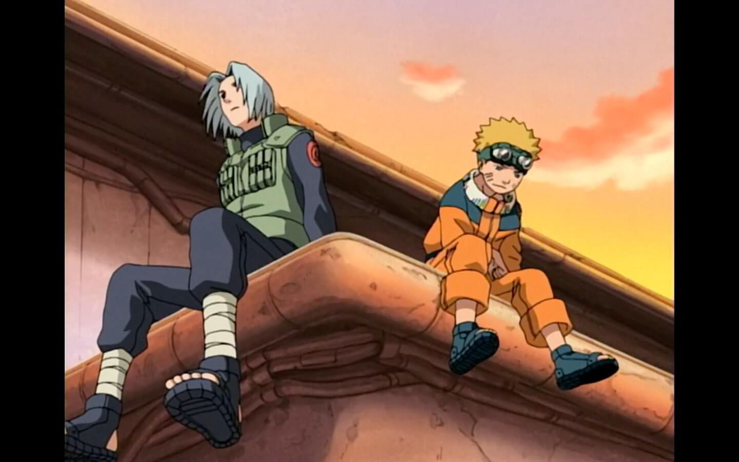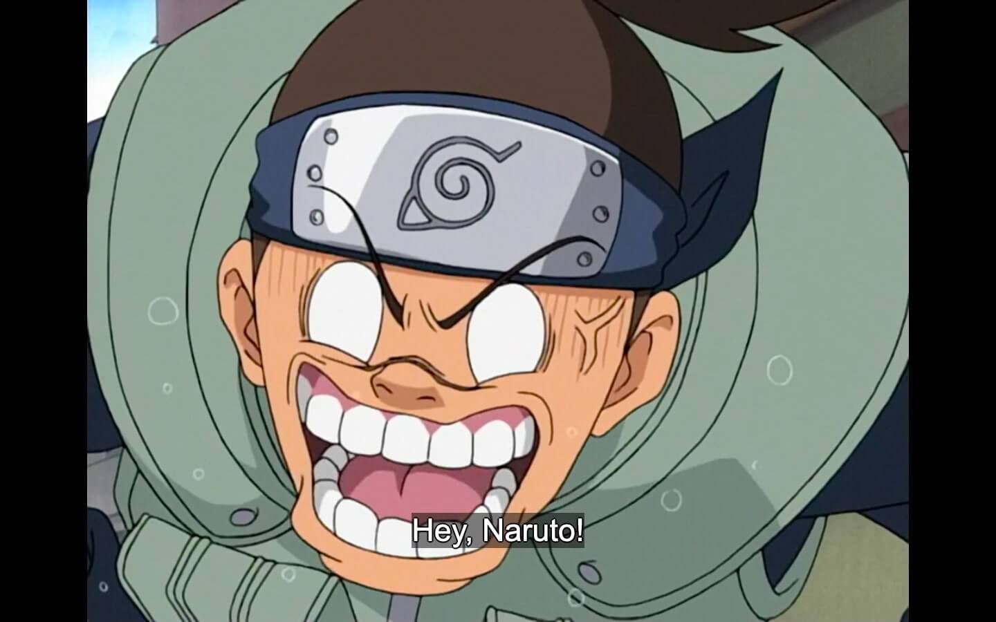 and now we cut to Present Day naruto. who is a PRANKSTER and a NUISANCE and it's really funny. he graffitis ninja mt. rushmore and his teacher iruka is really mad at him for it.