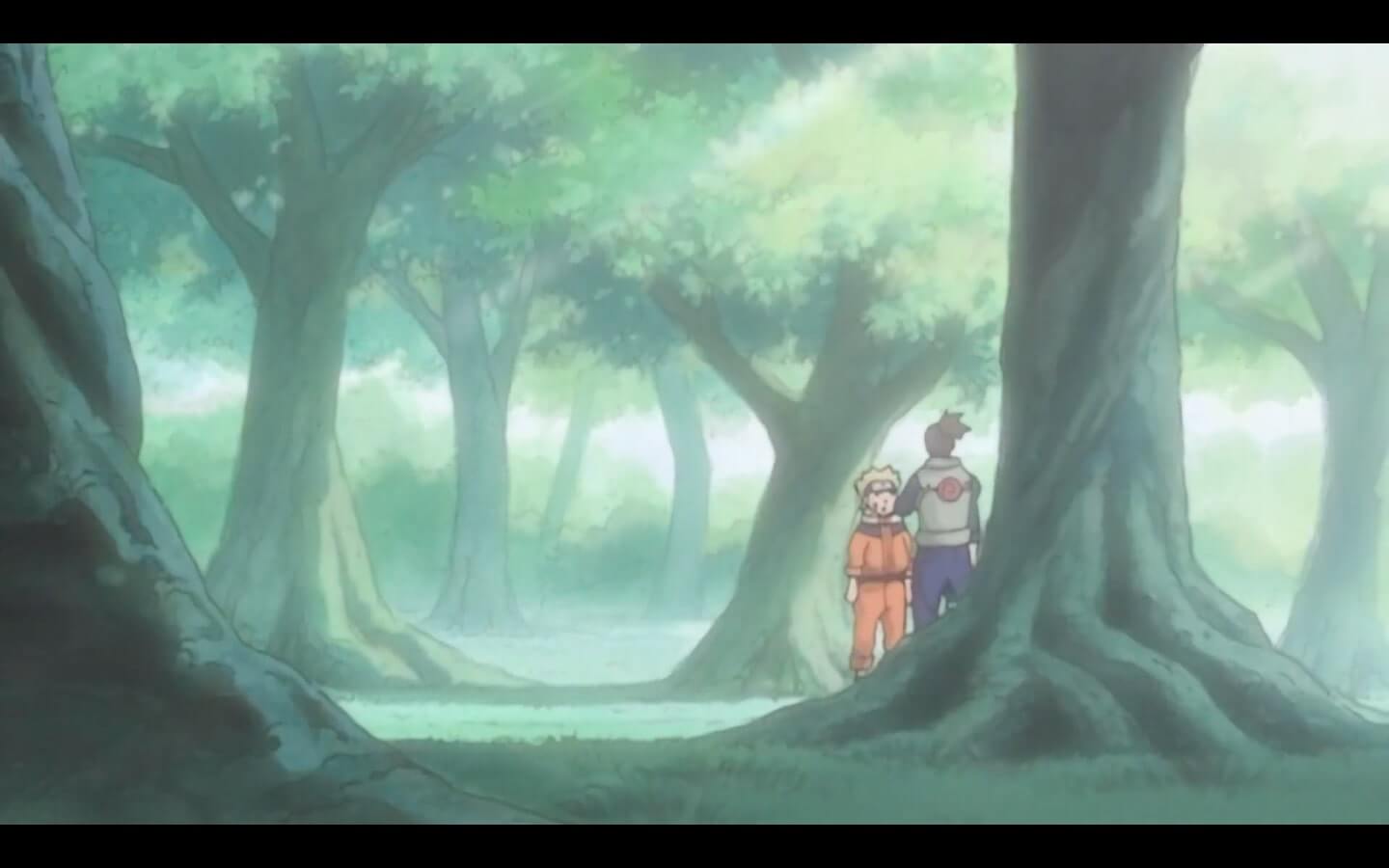 it's really funny how i was right about the opening scene in a very roundabout way. we open on an exterior shot of ninja forest (the hidden leaf village) and there are ninjas.