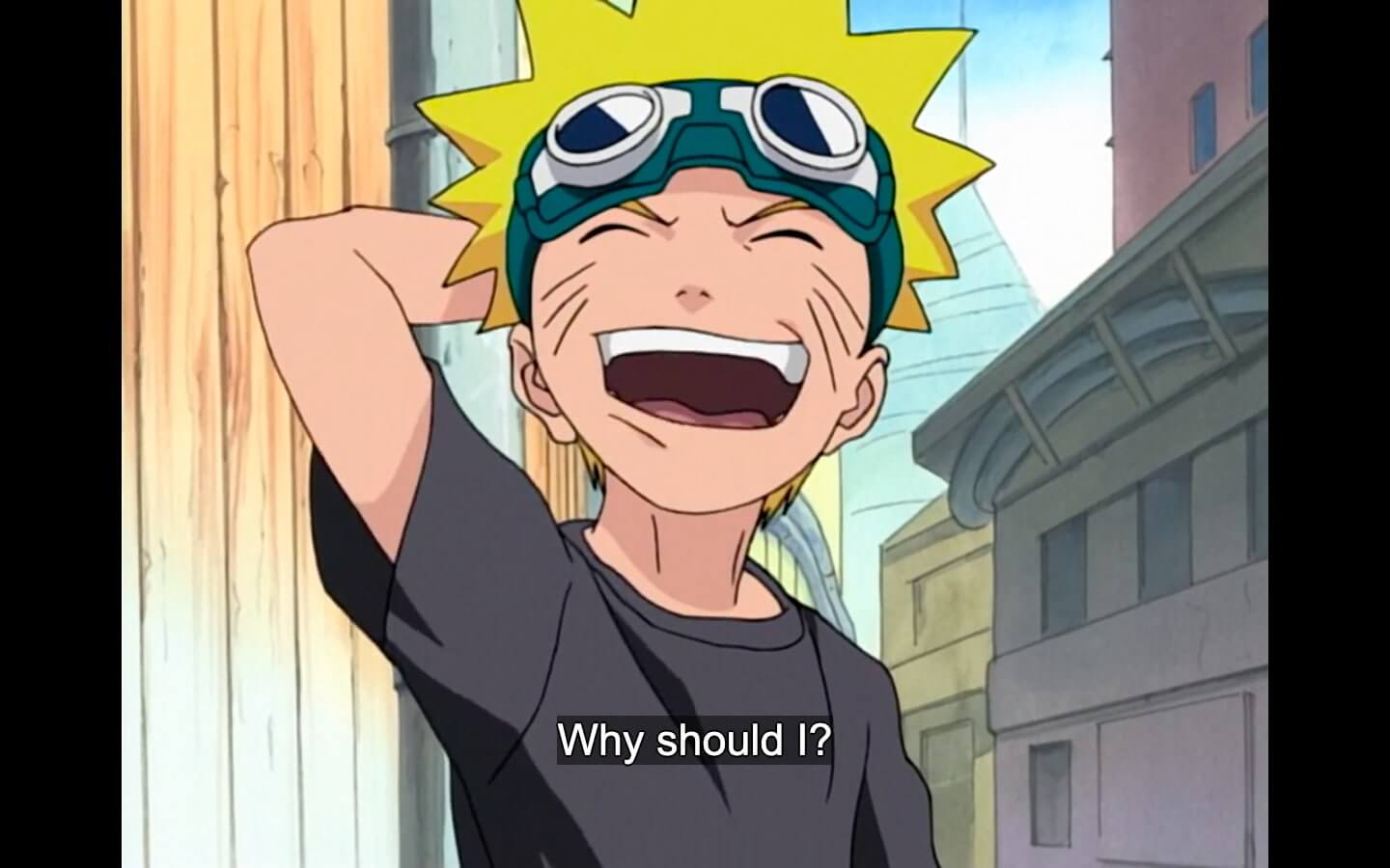 this was really an experience for me i think. do i really have to give a plot summary to the first episode of naruto? probably not but i will anyway.