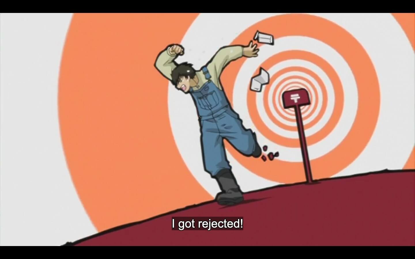 Fuuuuuck, dude. hideki is NOT giving up though! immediately after getting his heart broken, he starts hyping himself up again. it's fine! he'll go to a prep school in tokyo and study hard! and then NEXT year he'll DEFINITELY get into college!!!!!!