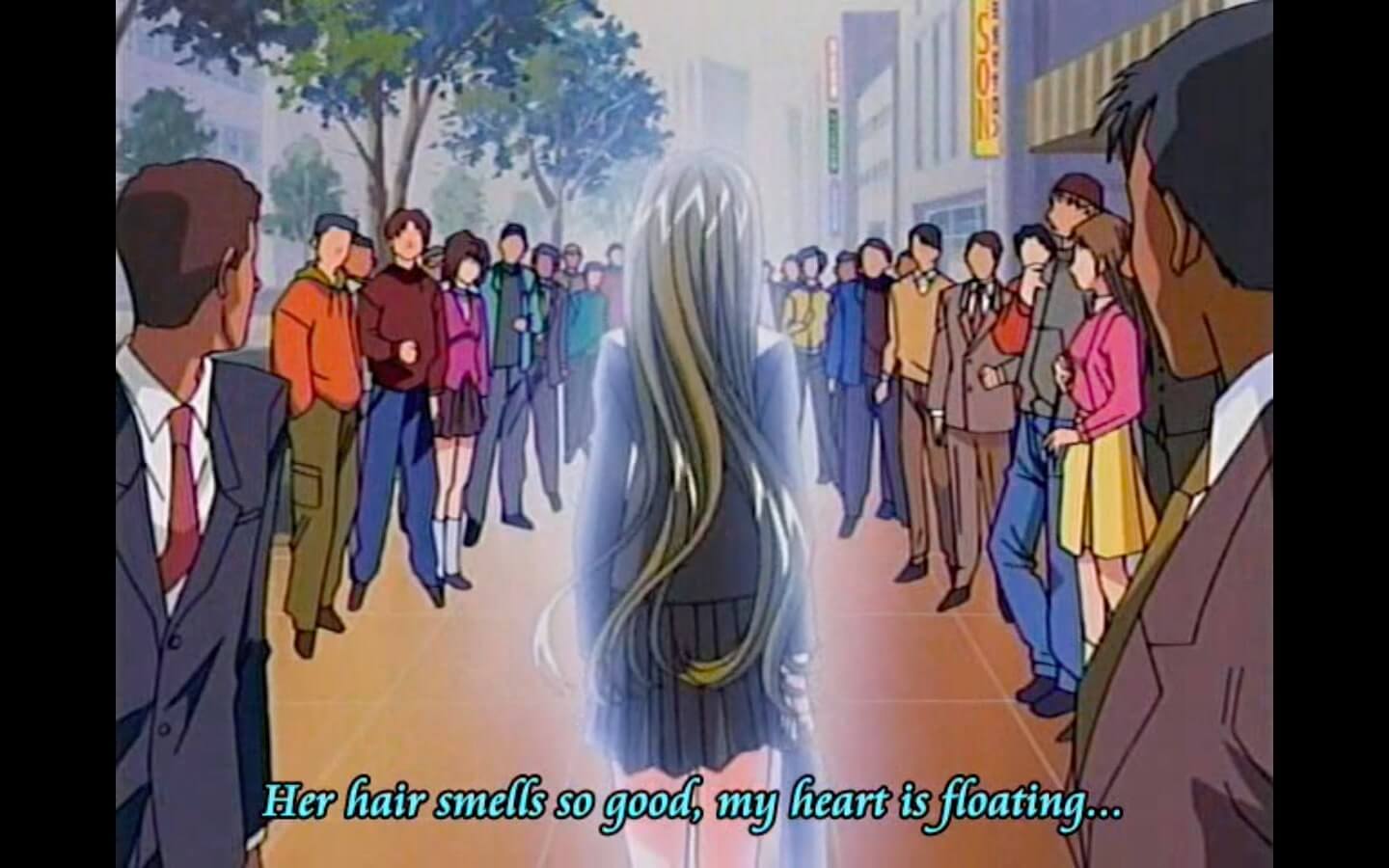 the show opens on a backview of a highschool girl who is apparently Drop Dead Gorgeous. everyone that sees her immediately falls in love with her, and she's frequently referred to as an angel.