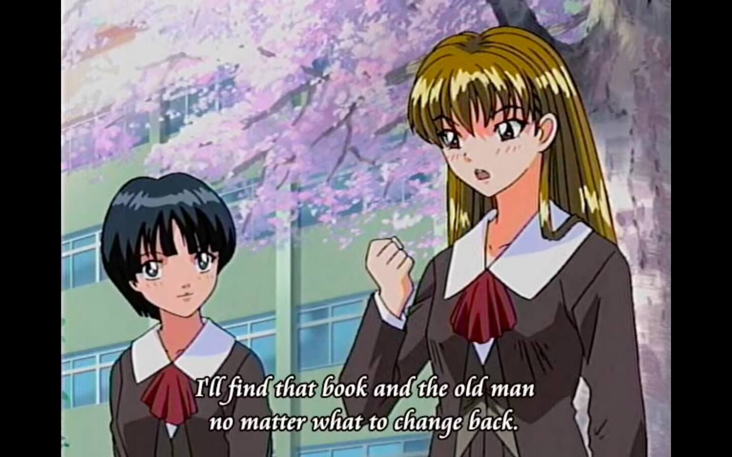 the old guy says he's just an old guy, but he does give megumi a book as a reward. miki thinks that he should just throw the book away, but megumi is really curious about the book, and naturally...