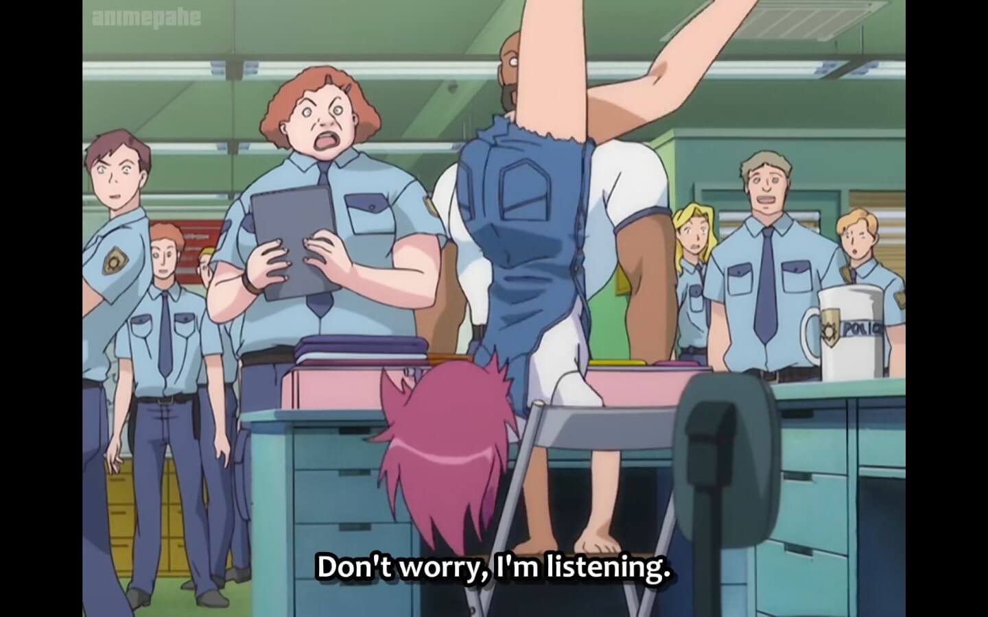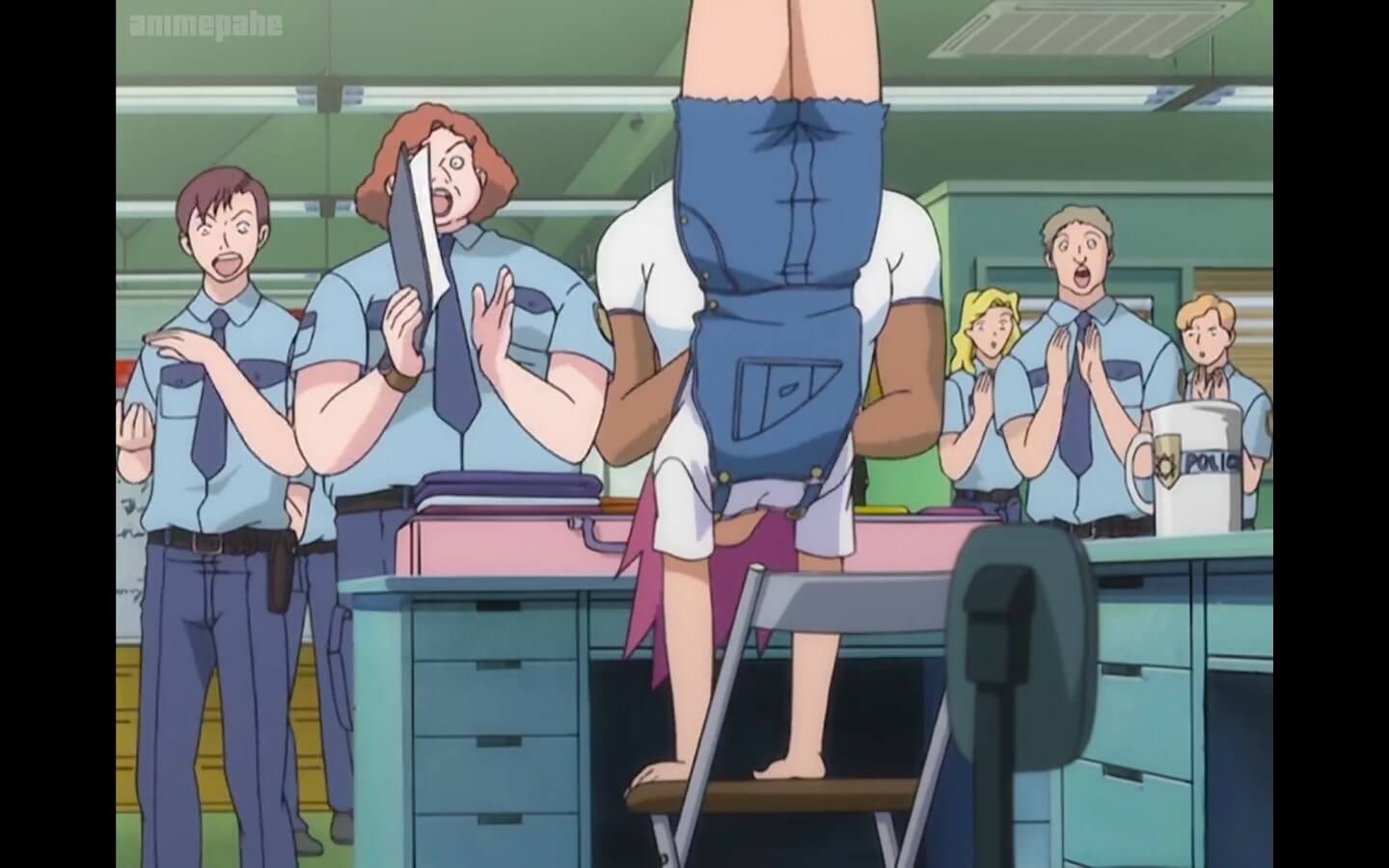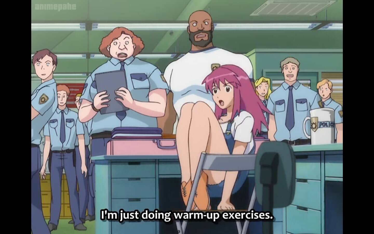 im really digging this one! ACROBAT ANIME!!!!!!!!!!!!!!!! the opening story is pretty simple but the ANIMATION is where it's really at for me here. IT'S REALLY GOOD! its fluid and engaging and FUN and there's SO MUCH of it before we even get to the actual acrobatics. our main girlie is a real fun character too- I'm getting ahead of myself.