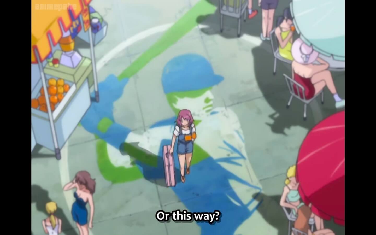 sora's walking sadly down the boardwalk, to go back home to japan and give up on her dreams of being an acrobat...