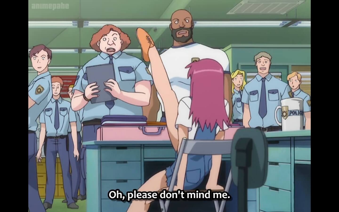 So now she's at the police department. Reporting her luggage theft? WRONG! SHE'S BEEN APPREHENDED ON SUSPECTION OF RUNNING AWAY FROM HOME??!?!?!?!?
