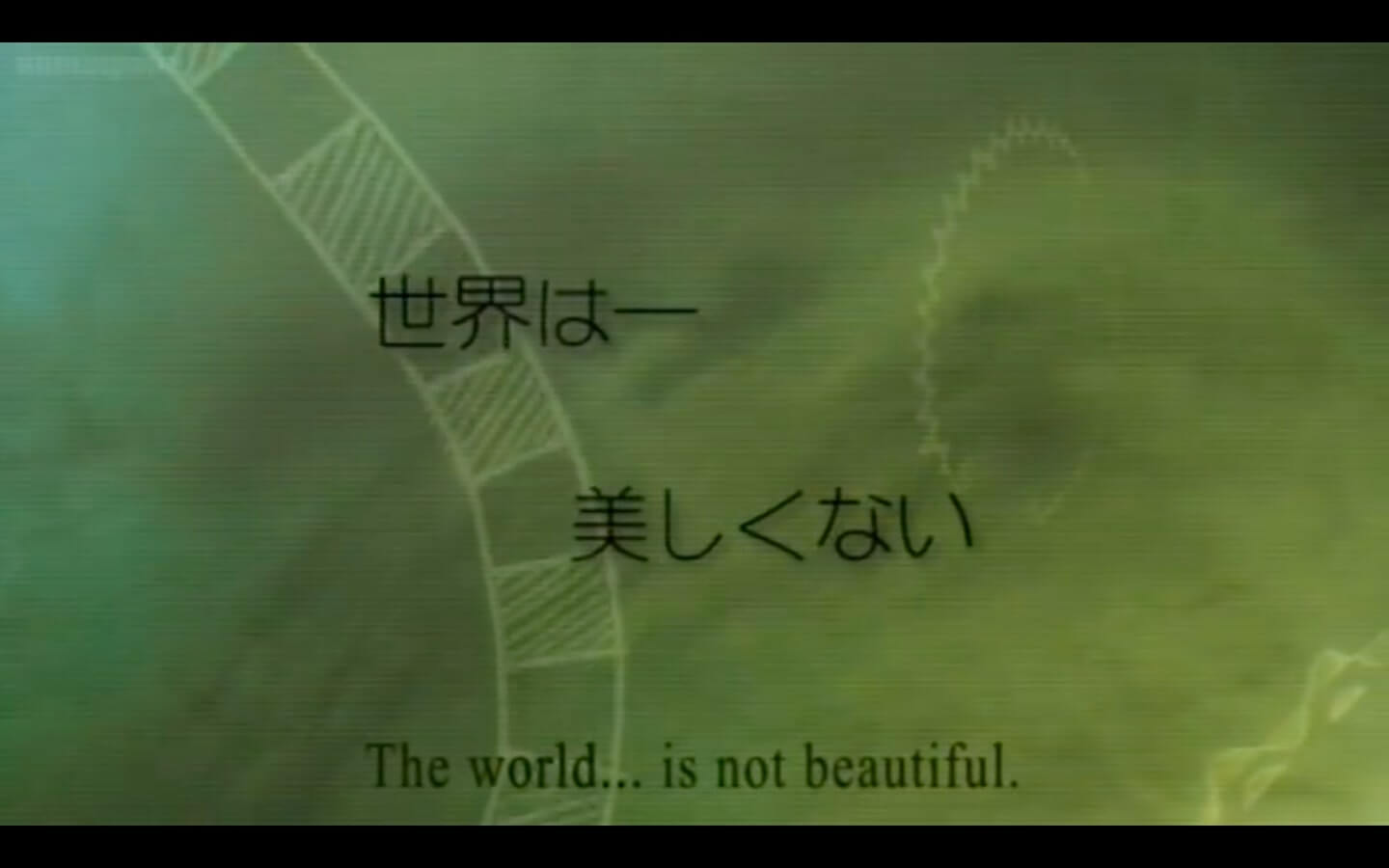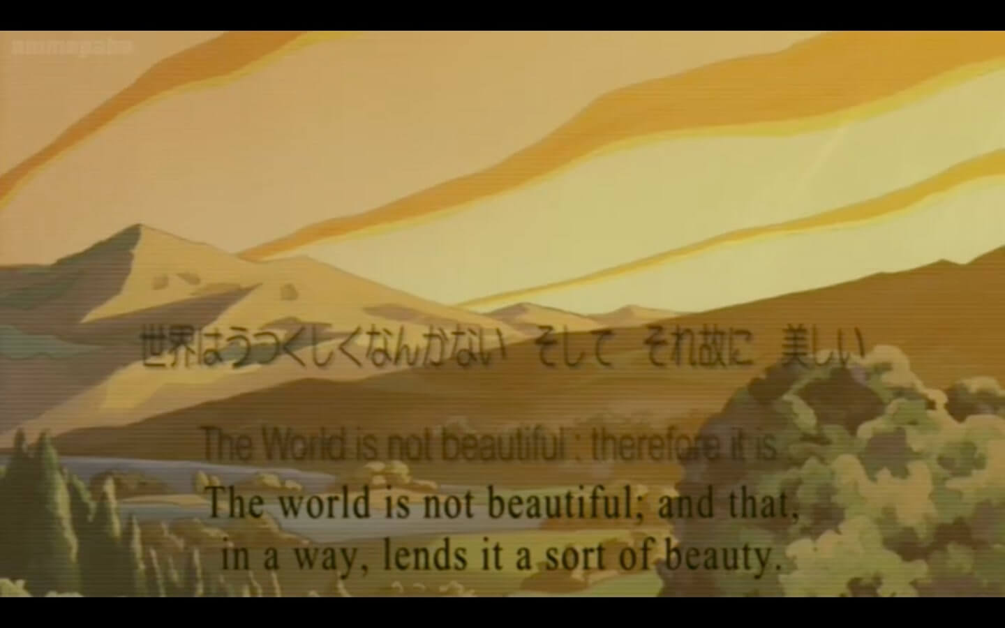 the episode ends, much in the same way it began, with a little text box stating that the world is not beautiful.