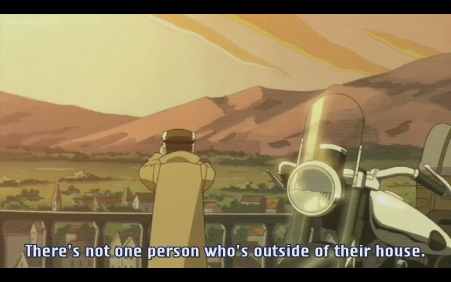 each country that kino visits is unique, and holds its own story for kino and hermes to uncover. i absolutely ADORE this premise!!!!!