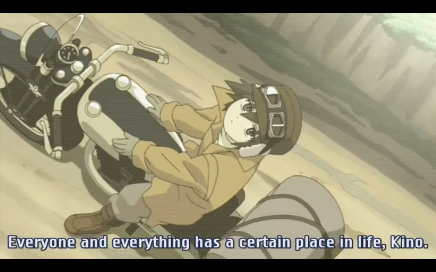 oh oh oh i also really really liked the OVA it was basically just the length of a regular kino episode cut in half. it was fascinating and i highly recommend watching it even if you don't plan on watching the rest of kino's journey. it completely stands on its own.