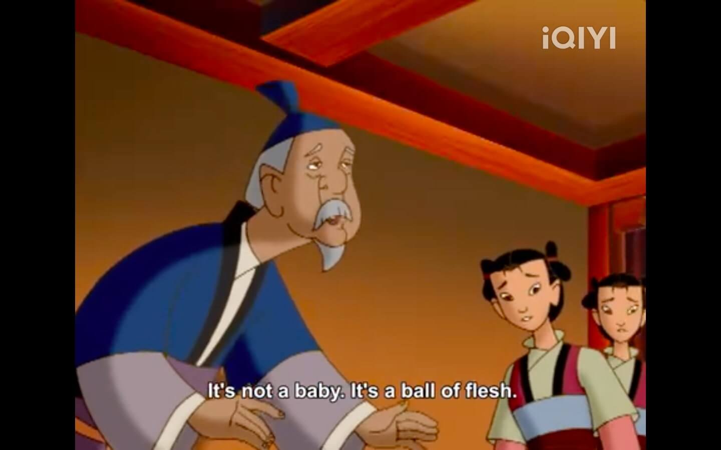 The ball of flesh was so disturbing li jing told one of his servants to send it down the river. which results in a dreamlike animation of the ball of flesh (covered by a red cloth) bobbing and weaving through a river. and then it abruptly cuts back to this guy (not li jing. this is the random servant) crying silently.