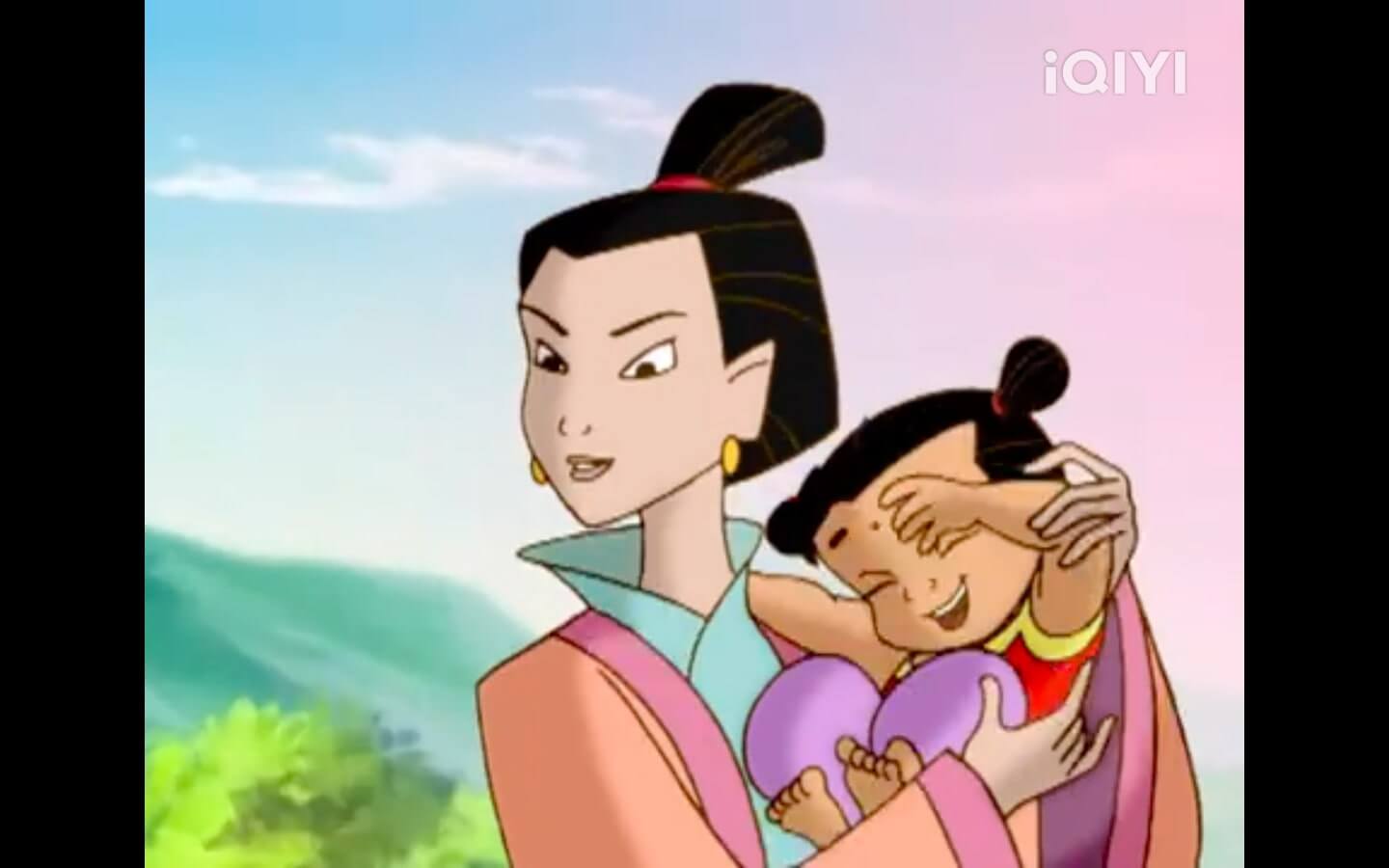 so the evil advisor forces li jing to draw his sword on the flesh ball even though he doesn't really want to, and then nezha hatches! he still has not said anything besides laughter. this is also the only picture i got of nezha. him and his mom