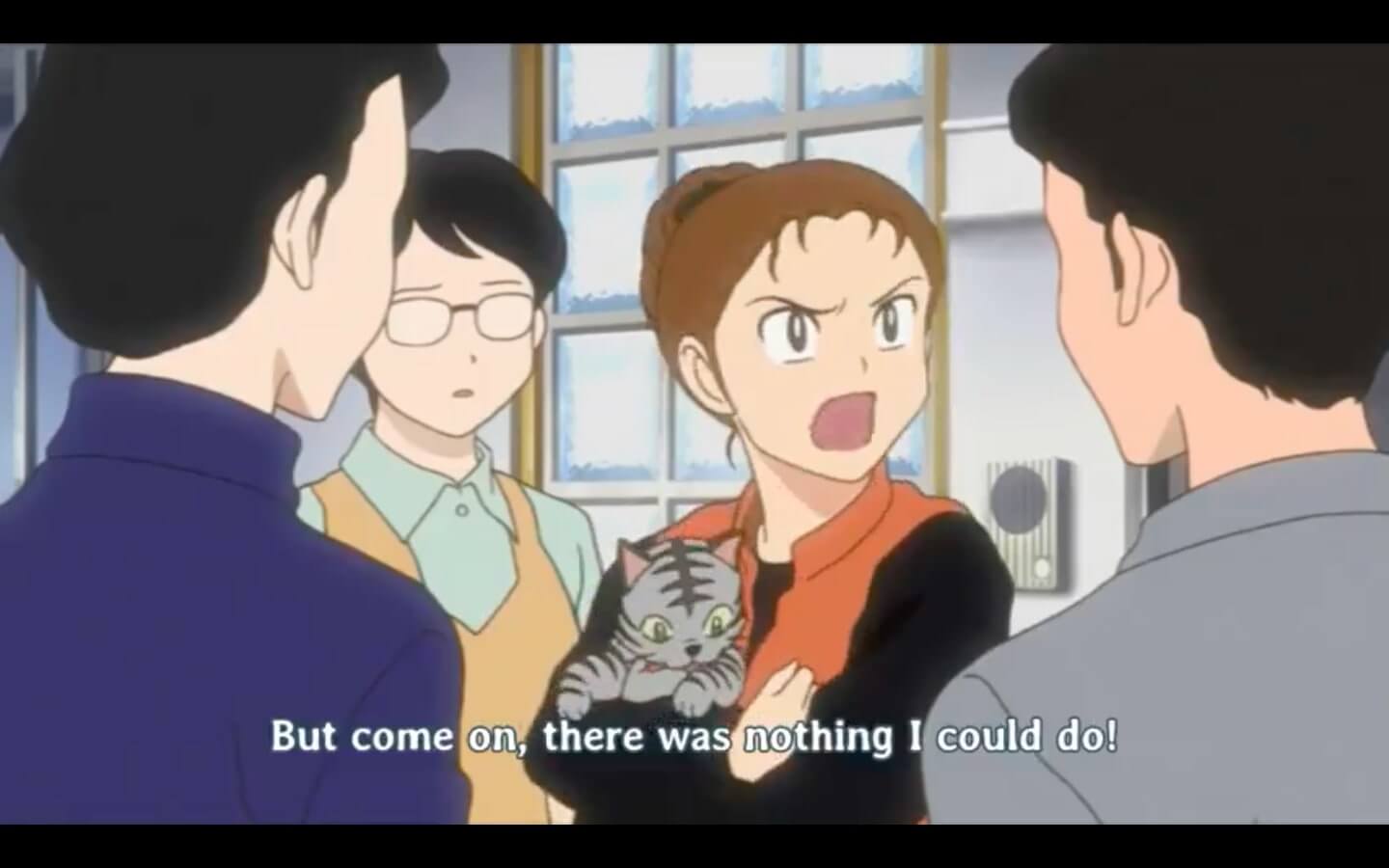 the intensity of the housing committee's hatred for pet owners keeps ramping up over the course of the episode too. one of the girls that's PART of the committee is found out to have a cat herself and she's put into this weird... interrogation??? scene???