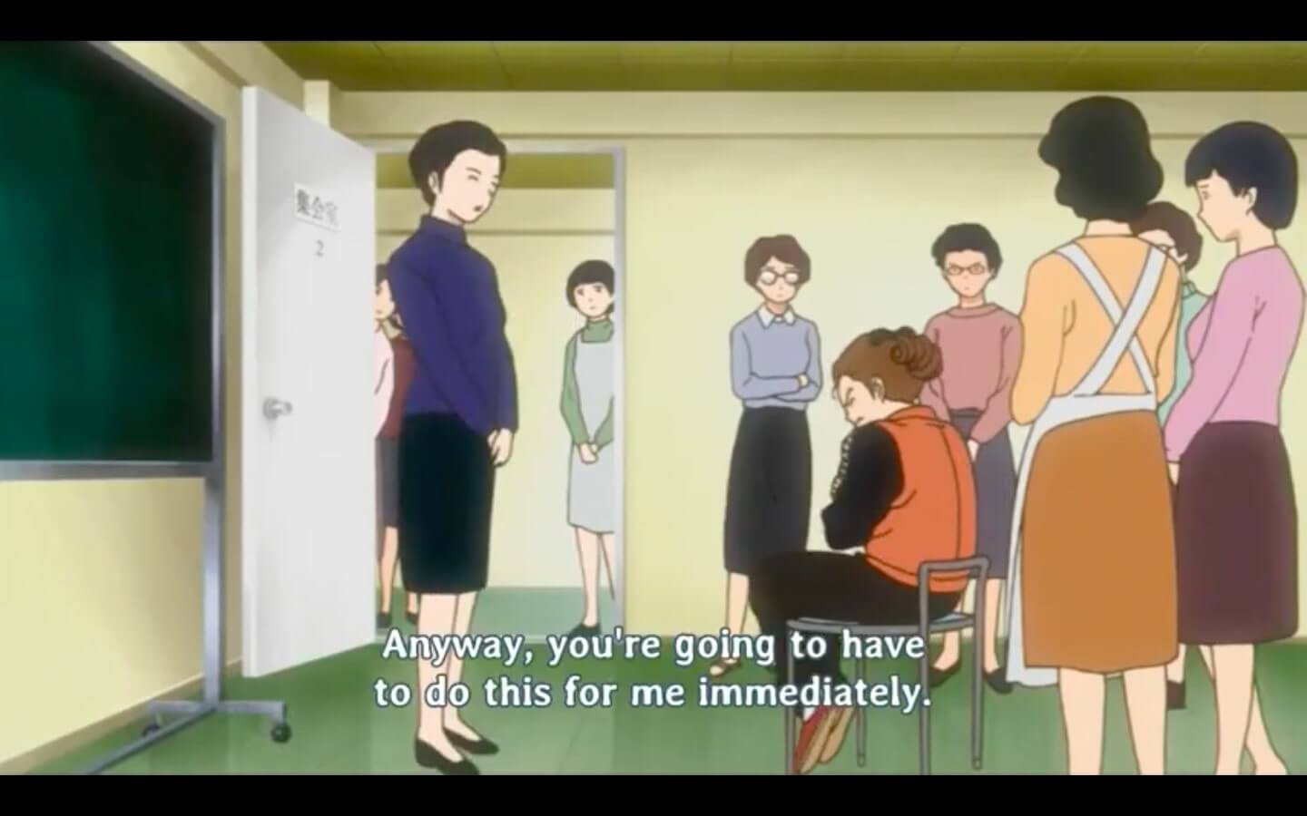 and this is kakei-san. she's the leader of the housing committee (homeowner's association). she's also very strict about the rules. and she's the one that forces people to move if she finds out they have pets.